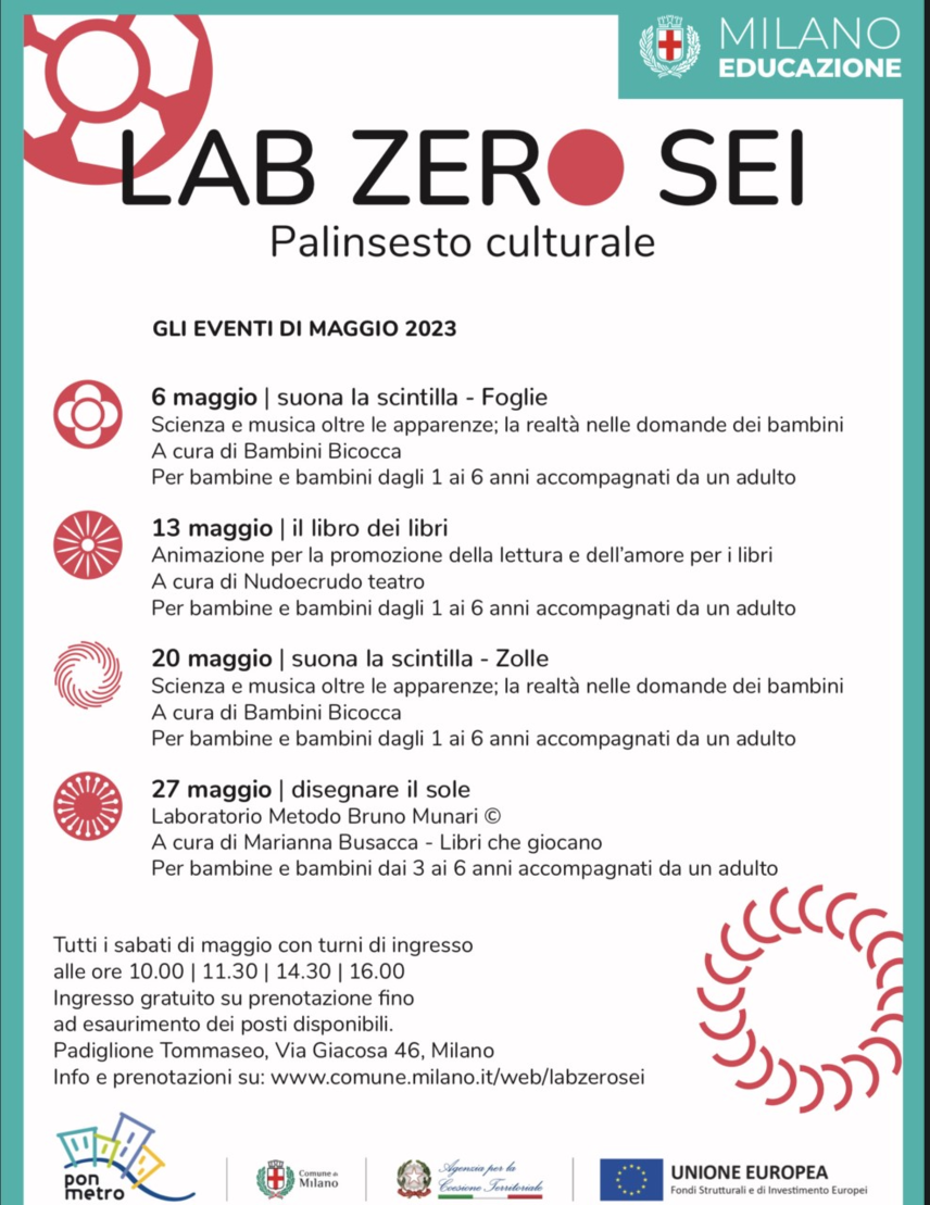 Locandina 2 Uno spazio sperimentale di innovazione in ambito educativo e culturale dedicato ai bambini e alle bambine da 0 a 6 anni. Gli spazi sono quasi pronti per ‘LABZEROSEI’, che arricchirà l'offerta educativa per i più piccoli a partire dalla fine di giugno nel padiglione Ex Cucine del Parco Trotter la cui ristrutturazione è stata possibile grazie a un investimento da parte del Comune di quasi 900mila euro, e un finanziamento europeo REACT-EU di 1,3 milioni di euro a favore del Comune di Milano che ha permesso sia l'allestimento dello spazio sia l’affidamento delle attività da realizzare al suo interno. Ad aggiudicarsi la progettazione e la realizzazione della proposta per i più piccoli è stata l’ATI costituita da MUBA-Museo dei Bambini Milano, COMIN, Università degli Studi di Milano Bicocca (Dipartimento di Scienze Umane per la Formazione), Università Cattolica del Sacro Cuore di Milano (CREMIT) e BAMBINI Bicocca SRL, con il coordinamento della Direzione Educazione del Comune di Milano. "Vogliamo rafforzare l'offerta educativa in città anche unendo le risorse comunali ai finanziamenti europei: nasce così LABZEROSEI – sottolinea la Vicesindaco e assessore all’Istruzione Anna Scavuzzo - che vede realtà di eccellenza in campo educativo e didattico dare nuova vita alle ex cucine del Parco Trotter, con una proposta innovativa dedicata ai più piccoli e alle loro famiglie. Si inizia con i fine settimana di maggio, poi una volta terminati i lavori verranno proposti ancora più appuntamenti ed esperienze educative che saranno una bellissima opportunità estiva per i più piccini”. Già in queste settimane, in attesa dell’apertura dello spazio a pieno regime per l’estate, sono stati infatti realizzati laboratori dedicati ai bambini e alle bambine dei nidi, delle sezioni primavera e delle scuole dell'infanzia del Comune di Milano direttamente svolti nei servizi. A partire da questo fine settimana e per tutti i fine settimana di maggio, saranno proposte all’interno del Parco Trotter attività culturali, didattiche e laboratoriali gratuite e aperte alle famiglie a bambini e bambine. Per conoscere l’offerta e partecipare, è necessario prenotarsi sul sito. Saranno proprio le attività che hanno già preso il via in modo diffuso in città e che entro l’estate troveranno posto all’interno dello spazio ‘LABZEROSEI’, a rendere questo progetto così innovativo. Qui troveranno infatti spazio proposte educative e laboratoriali rivolte a bambine e bambini, percorsi formativi, convegni e proposte per gli adulti che avranno come focus la sperimentazione di percorsi educativi e culturali che intrecciano linguaggi differenti quali i linguaggi della scienza, dell'arte, del digitale, della musica, della natura. La proposta di ‘LABZEROSEI’ si completerà e si arricchirà poi di un palinsesto artistico e culturale per bambini e loro famiglie che spazierà dalle arti visive a quelle performative. Il programma è composto da micro eventi territoriali e da due grandi festival a carattere partecipativo di rilevanza cittadina che mirano a divulgare e valorizzare il lavoro di ricerca e sperimentazione di LABZEROSEI.