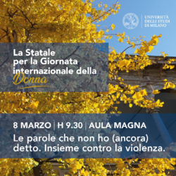 Domani, venerdì 8 marzo, alle ore 11,00 l’assessora alle Politiche del Lavoro e Sviluppo Economico Alessia Cappello sarà al convegno “Le parole che non ti ho (ancora) detto. Insieme contro la violenza”, presso l’Aula Magna dell’Università degli Studi in via Festa del Perdono 7.Alle ore 13.30 parteciperà a Palazzo Castiglioni in corso Venezia 47 alla presentazione del progetto “Obbiettivo alla seconda”.