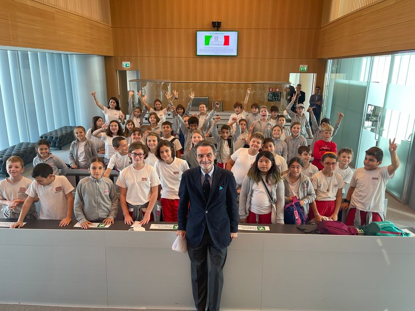Due V elementari a scuola di educazione civica con il presidente Fontana